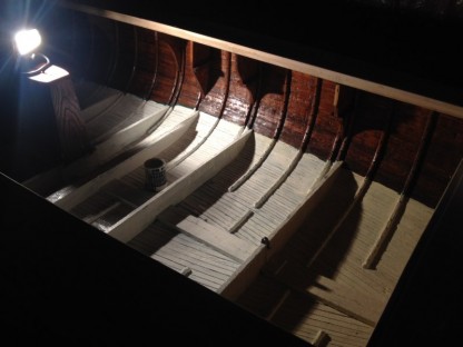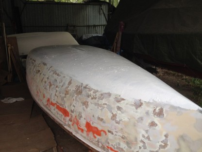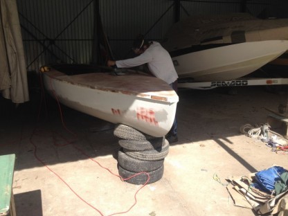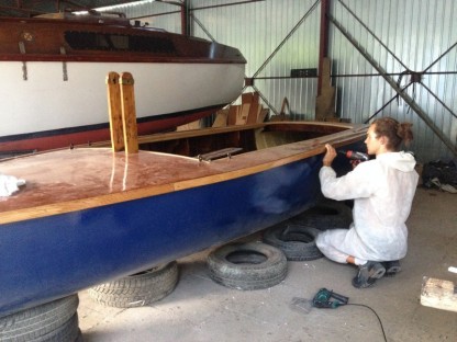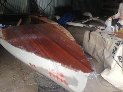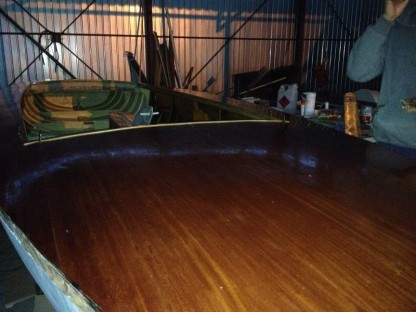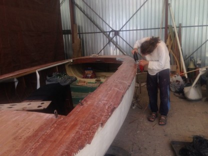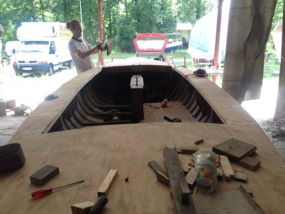 Zgadałem się z właścicielem, dobiliśmy targu. Przez dziesięć dni udało się położyć nowy pokład ze sklejki wodoodpornej (czyli np. ułożyć łódkę tak i tak ją spiąć, by się nie otworzyła i nie rozpadła po zdjęciu starego pokładu i przed położeniem nowego), udało się też zrewidować i ewentualnie poprawić elementy szkieletu w pozostałej części kadłuba oraz zdjąć całą „piękną, niebieską” farbę, przykrywającą prawdziwie piękne wnętrze drewnianego kadłuba, z jego „słomkowym” poszyciem, dębowymi, giętymi na parze i wpasowywanymi żebrami i miedzianymi nitami… Cudeńko!