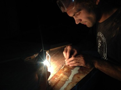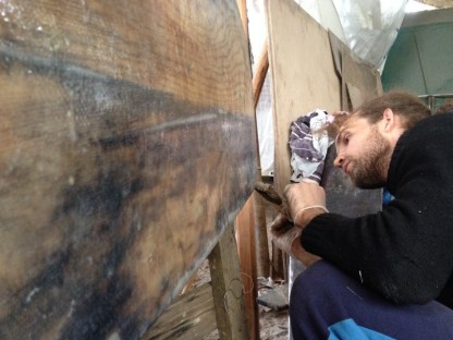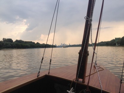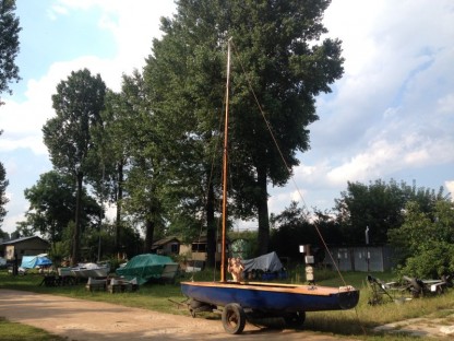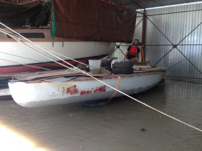 Potem był czerwiec 2014 roku i wysoka woda na Wiśle: trzeba było przygotować się do tego, że łódka będzie pływać: robiona była bowiem w Warszawskim Klubie Wodniaków PTTK w Warszawie, który mieści się w wiślanym międzywalu, przy Wale Miedzeszyńskim, kawałek za Mostem Siekierkowskim. Cały warsztat przenieśliśmy do łódki, przewożąc ja uprzednio w miejsce z betonową posadzką. Było to o tyle ważne, że nie powinno być tam błota po wysokiej wodzie.