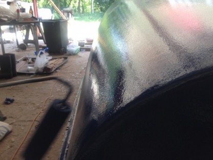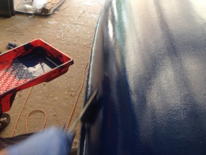 Kładliśmy 3 warstwy, każda innego koloru: tak, by widać było miejsca do poprawek. Farby polecił nam zawodowy szkutnik, który miał warsztat kilkadziesiąt metrów obok naszej łódki.
