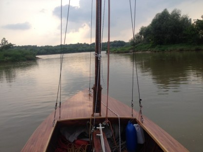 Pierwsze pływania: pod pagajem po porcie WKW nad Wisłą, z silnikiem. Pierwsza podróż w dół Wisły – – przeprowadzka do Portu Czerniakowskiego, do Żeglarskiego Klubu Turystycznego „Rejsy”. Wreszcie – dostrajanie takielunku i żagli i pierwsze pływania pod żaglami po Wiśle w Warszawie.